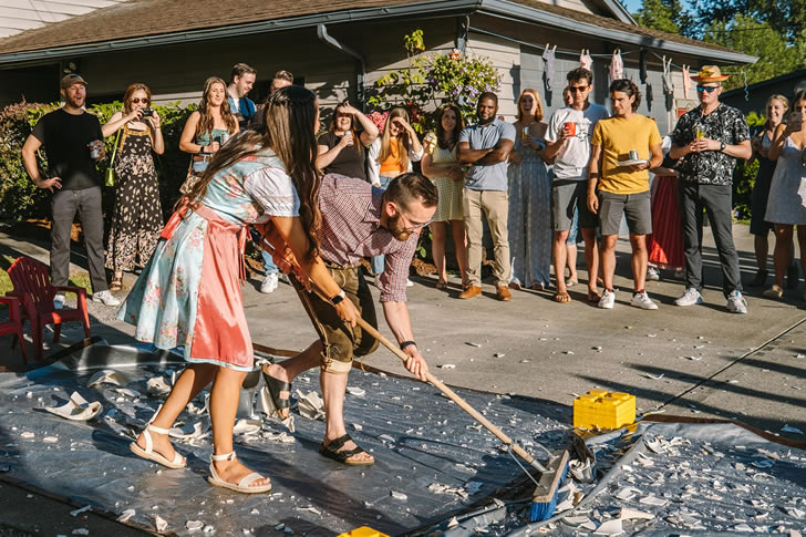 Before German weddings, there’s Polterabend—a custom where friends and family smash porcelain plates, sinks, and even toilets in front of the couple. The engaged pair then cleans it all up together, symbolizing teamwork and resilience. And yes, it happens on purpose.