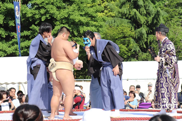 Unlike the previously mentioned Naki Sumo, this lesser-known variation held in different regions has the same core idea: sumo wrestlers holding babies and competing to see who can make them cry first. But in some towns, the twist is that babies compete solo—with judges provoking them using masks and loud noises.