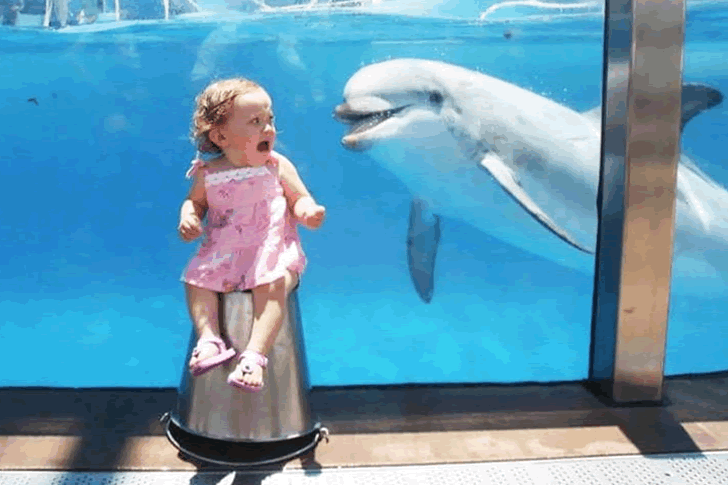 毫無疑問,海豚是海洋中最迷人的生物之一,也被認為是地球上最聰明的動物之一。牠們能夠發出獨特的口哨聲作為自己的名字,這證明了牠們非凡的社交複雜性和溝通能力。雖然這些特點引起許多人的讚賞,但也有人對海豚持懷疑態度。例如,這張照片裡的小女孩,儘管大家都很喜歡海豚,但她對這些海洋哺乳動物還是表現出一定的保留態度。