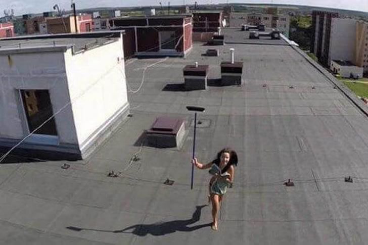 這張爆笑又抓拍得恰到好處的無人機照片,捕捉到一位正在自家屋頂上曬日光浴的女子,突然被一位不速之客的空中訪客嚇了一跳。顯然她對這突如其來的「空襲」並不滿意,隨即抓起一把掃帚,朝著無人機的方向扔了出去。這個瞬間被精準捕捉下來——掃帚停滯在半空中,無人機則剛好閃出畫面之外。